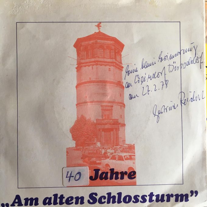 Signiert 1978 von Gertrud Reichert, der Witwe des Heimatdichters Hans Reichert (1896-1967), der den Text zu dem bekannten Düsseldorfer Lied verfasst hat.