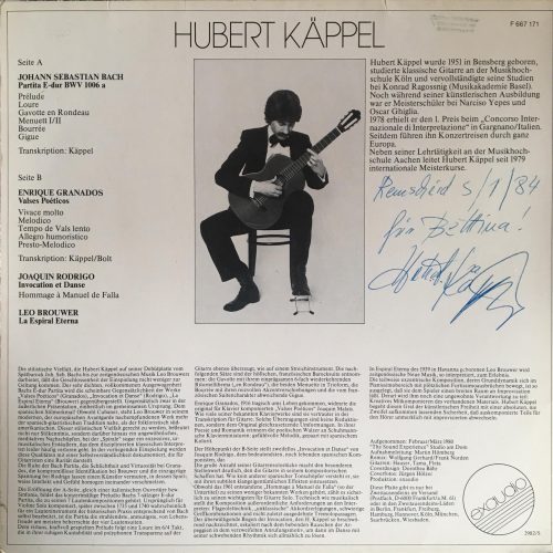 Hubert Käppel – Spielt Werke von Bach, Granados, Rodrigo, Brouwer Posted in Klassik Exaudio F 667 171 Rückseitig signiert von Hubert Käppel (1984) Post Views: 4