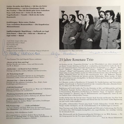Rosenau-Trio Baden-Baden – Grün ist die Heide Posted in Klassik Vorderseitig mit Widmung von Willy Rosenau, rückseitig signiert von allen drei Mitgliedern des Trios. Post Views: 3