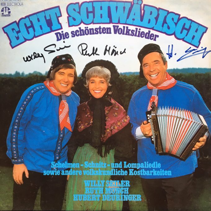 Willy Seiler, Ruth Mönch & Hubert Deuringer – Echt Schwäbisch Posted in Volksmusik D 1975, EMI 1C 148-42 141/142 Signiert von Ruth Mönch, Willy Seiler und Hubert Deuringer. Post Views: 1